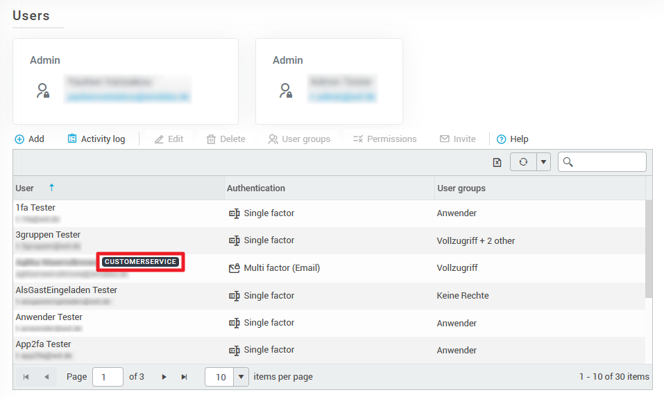 You can see whether you have a permanent konfipay customer advisor in your client's user list. The name is marked with the tag Customer Service: