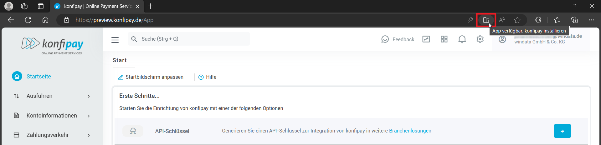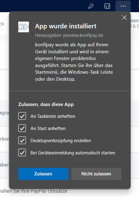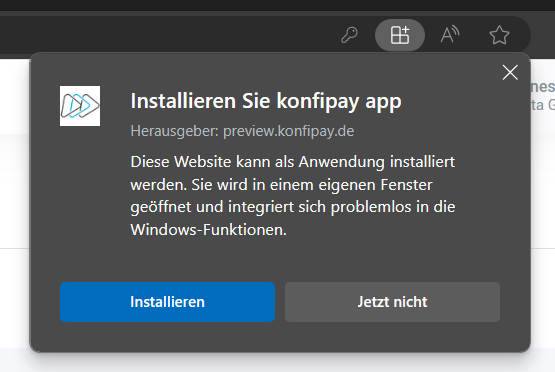 konfipay auf Ihrem PC installieren (PWA in Edge)