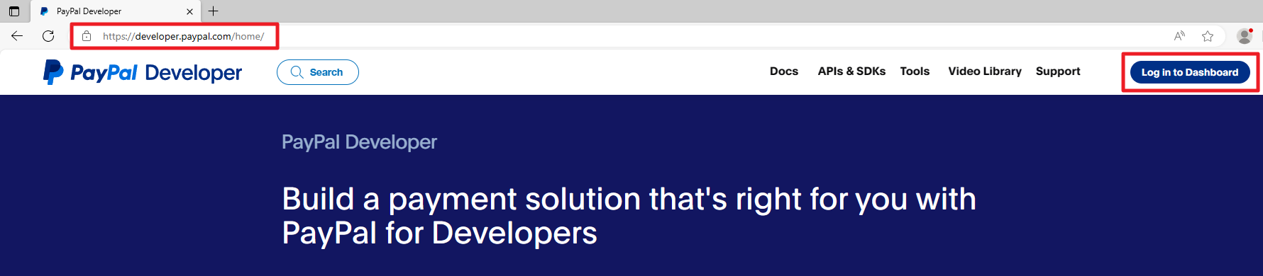| 1 | Navigieren Sie zunächst zu: https://developer.paypal.com/home und klicken Sie auf Log in to Dashboard. | ![]() |