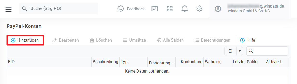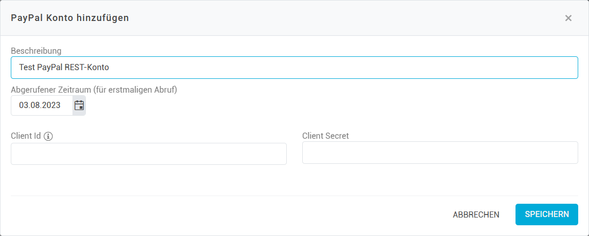 | 9 | Vergeben Sie eine Bezeichnung für das Konto. Die Schritte 10 und 11 zeigen Ihnen, wie Sie jeweils die Client ID und Client Secret aus PayPal an den entsprechenden Stellen hier einfügen. Das Feld Abgerufener Zeitraum legt fest, wie weit in die Vergangenheit der initiale Transaktionsabruf gehen soll. | ![]() |